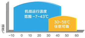 1、運行范圍寬廣,-7oC~43oC的寬廣環境溫度范圍內可穩定運行,讓用戶一年四季都不受外界惡劣天氣的影響。出水溫度30oC~58oC靈活可設,根據用戶需求隨心設定,滿足用戶不同的個性化要求。