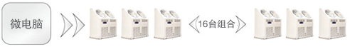 3、集中控制功能,單臺線控器可集中控制16臺熱水機組,一步到位,簡單方便。
